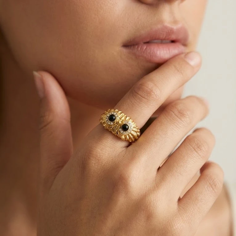 La intricada representación del búho en este diseño es lo que realmente lo distingue. Cada detalle está pensado para reflejar fielmente su rostro y mirada hipnótica, acercándote a la naturaleza animal. Ideal para quienes buscan una joya que transmita un significado profundo, el anillo simboliza sabiduría, intuición y misterio. Este accesorio se convierte en más que una simple pieza de moda: es una declaración personal.