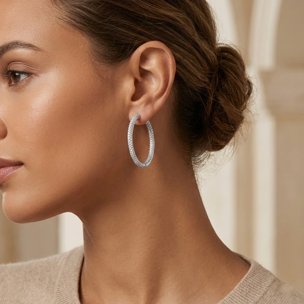 Cada aro está elaborado con plata de ley auténtica, conocida por su durabilidad y brillo atemporal. El pavé de circonitas resalta la pieza, ofreciendo una luminosidad deslumbrante sin ser demasiado extravagante. Ideal tanto para complementar tu atuendo de día como para ocasiones especiales.