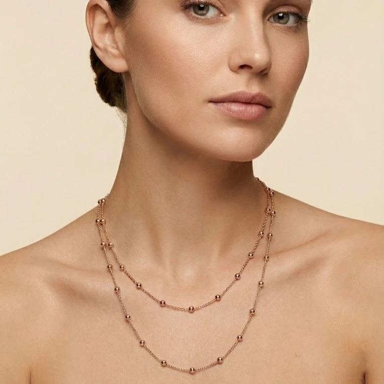 Uno de los mayores atributos de este collar es su diseƱo multiposición. La cadenita con perlitas distantes permite jugar con distintos estilos y ajustarse a tus preferencias. Puedes llevarlo en capas, combinado con otros collares, o como pieza Ćŗnica que realza tu outfit. Esta versatilidad hace que sea un complemento ideal tanto para eventos especiales como para el dĆa a dĆa.