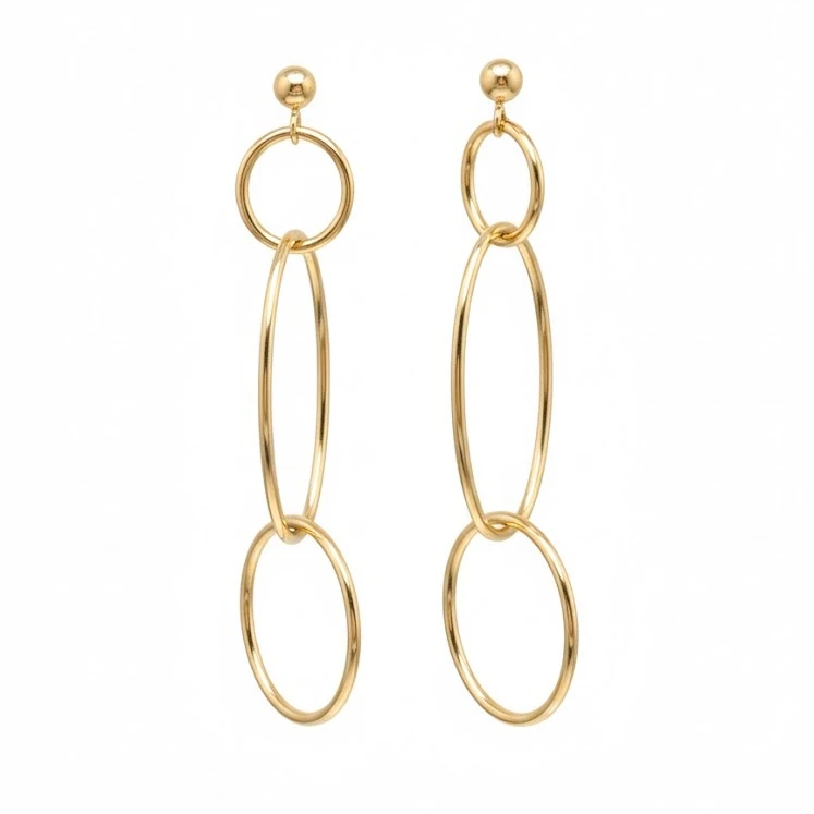 Descubre el pendiente de plata de ley, meticulosamente bañado en oro de 18k. Diseñado con tres aros entrelazados, cada uno colgando delicadamente del otro, este accesorio combina elegancia y dinamismo, creando un look inigualable. Ideal para las amantes de las piezas modernas y refinadas, este pendiente aporta un toque especial a cualquier conjunto.