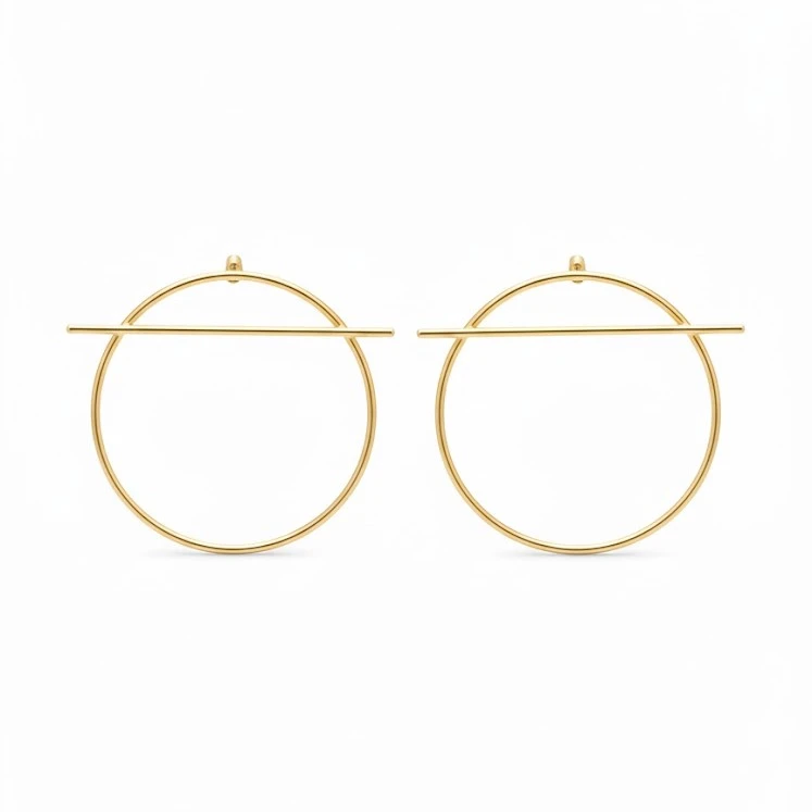 Descubre la elegancia de nuestros pendientes de plata de ley bañados en oro de 18 quilates. Estos aros finos de tamaño medio han sido diseñados para destacar en cualquier situación, desde eventos especiales hasta el día a día. Su estilo minimalista, combinado con una barra transversal que los atraviesa de lado a lado, añade un toque moderno y único para quienes buscan un accesorio diferente.