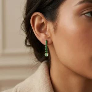 Los pendientes de circonitas verdes en forma de tira son increĆblemente versĆ”tiles. Puedes usarlos para elevar tus atuendos diarios o para destacar en eventos y reuniones especiales. Gracias a su diseƱo ligero y ergonómico, son cómodos de llevar durante largos periodos sin perder su encanto y estilo. Son ideales como regalo, ya que combinan elegancia, amor por lo artesanal y un diseƱo que enamora.