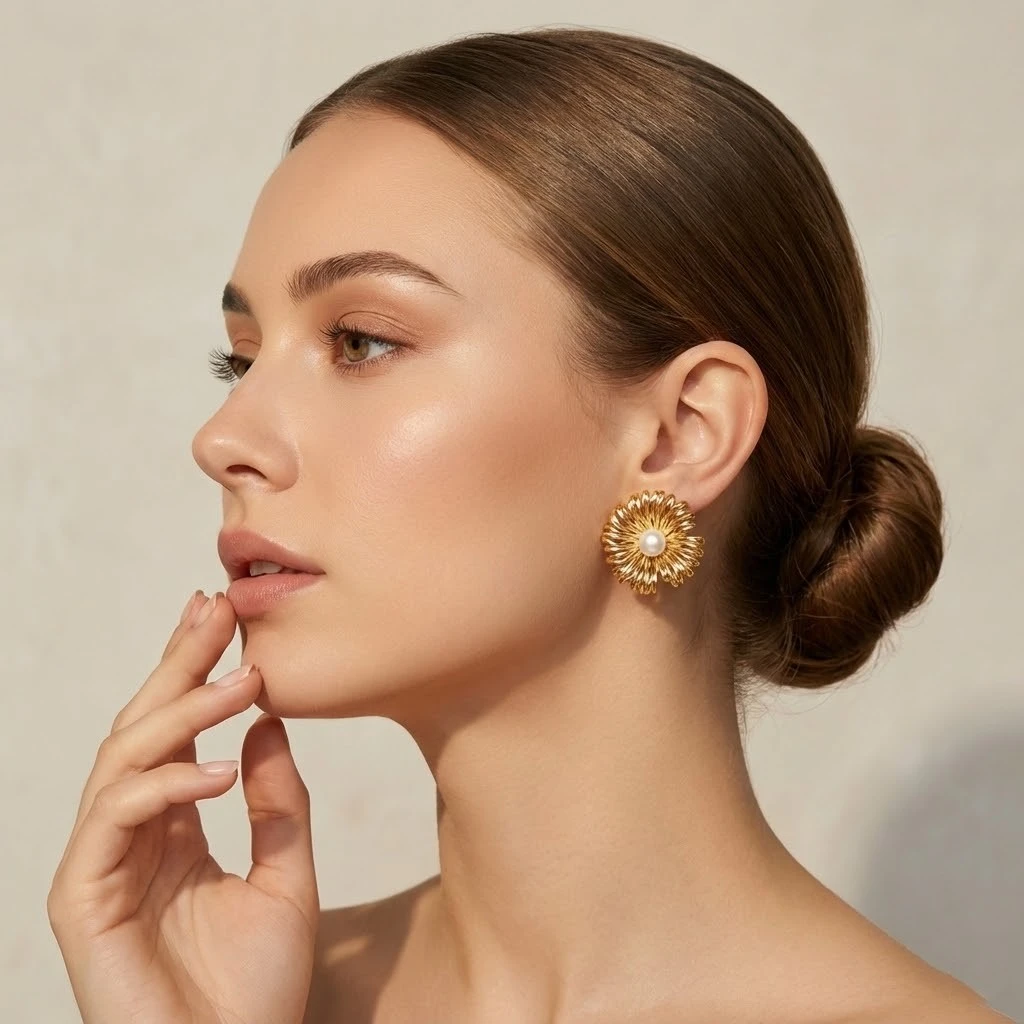 Fabricados con acero inoxidable de categoría premium 316L, estos pendientes garantizan durabilidad y resistencia al desgaste. Además, el baño en oro de 18k aporta un toque adicional de sofisticación y lujo. El centro adornado con una perla elegida cuidadosamente complementa el diseño, proporcionando una apariencia refinada que perfecta para cualquier ocasión.