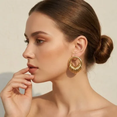 Ya sea que vistas casual o formal, nuestros pendientes bañados en oro están diseñados para complementar cualquier estilo. Con su diseño único lleno de volumen, añaden un impacto visual inmediato que llama la atención sin ser abrumador. Son ideales para eventos especiales, salidas con amigos, o simplemente para elevar tu look diario.