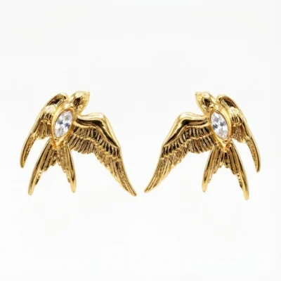 Descubre una combinación perfecta entre estilo y funcionalidad con estos pendientes fabricados en acero inoxidable 316L y bañados en oro de 18k. Su diseño único inspirado en el colibrí captura la belleza natural y delicadeza de esta ave, añadiendo un toque especial a tu look. Estos accesorios son ideales para quienes buscan piezas discretas pero con un atractivo brillante.
