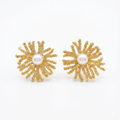 Estos pendientes de acero inoxidable 316L bañado en oro de 18k son una verdadera obra de arte. Inspirados en la delicadeza de las ramas de coral, su diseño es único y atractivo. En el centro, cada pendiente cuenta con una perla elegante que aporta un toque de sofisticación equilibrado con la simplicidad del diseño redondo. Perfectos para complementar tu estilo, estos pendientes combinan lo clásico y lo contemporáneo.
