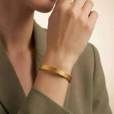¿Cómoda? Absolutamente. No hay necesidad de sacrificar la comodidad por el estilo. Esta pulsera se desliza sobre tu muñeca con facilidad, y tan ligera como versátil, se adapta perfectamente desde una reunión de trabajo hasta una cena especial. Es el accesorio que no querrás quitarte, ¡y no tendrás por qué hacerlo!